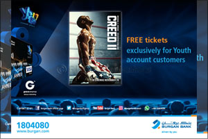 Kuwait, 20 November, 2018: Burgan Bank, in collaboration with Grand Cinemas, announced today that its Youth Account Holders will be offered the exclusivity to watch the first screening of the new movie “Creed 2” for free at the luxurious movie theatre of Grand Cinemas located in Al Hamra Luxury Centre.