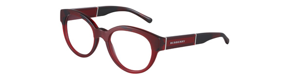 - Frames feature exaggerated temples with silver coloured metallic capped tips with engraved Burberry logo Hinge points with traditional double pin hinges, visible on the temples and front